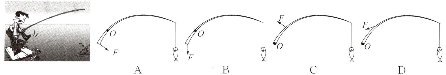 C 解析:由题图可知,在使用钓鱼竿的过程中,支点在钓鱼竿的下端,动力臂小于阻力臂,属于费力杠杆;当动力F与钓鱼竿垂直时,动力臂最大,阻力和阻力臂一定,根据杠杆平衡条件可知,此时动力最小,C符合题意.