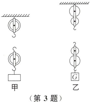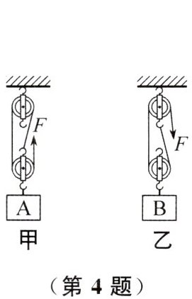 4. 用四个相同的滑轮组成如图甲、乙所示的两个滑轮组匀速提升重物,不计绳重和摩擦,若绳自由端的拉力和移动速度相同,则在相同时间内
