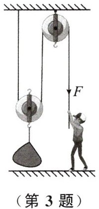 3. (2024·大庆)如图所示,在大小为$75N的拉力F$的作用下,用滑轮组将重为$100N$的货物匀速提升,在$10s内货物竖直上升了2m$.下列说法正确的是