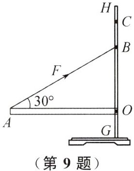 9. 水平地面上放着重为$200N$、棱长为$0.2m$的正方体物块,现将其由斜面底端匀速拉至顶端,如图所示.已知平行于斜面的拉力为$120N$,物块移动的距离为$2m$,升高$1m$.