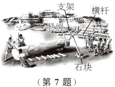 7. 朝鲜族有一种深受群众喜爱的娱乐活动“跳板”,支点在跳板中央,当体重均为$600N的两名运动员从1.5m$高处由静止下落到跳板一端时,静止于另一端重为$450N的女运动员被向上弹起3m$高.若不计空气阻力,跳板的机械效率为