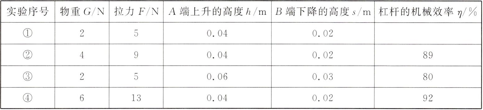 (4)第①组实验中,杠杆的机械效率为____.