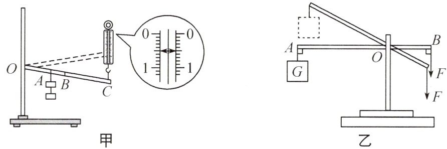 (1)实验中,弹簧测力计的示数如图甲所示,为____$N$,物重为$1N$,物体上升的高度为$0.1m$时,$C点上升了30cm$,则杠杆的机械效率为____$\%$(百分号前保留$1$位小数).
