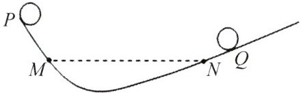 13. 如图所示,小球从左侧斜面的P点由静止释放,在右侧斜面上能到达的最高位置是Q点,M、N是小球运动过程中先后通过的两个等高点.下列关于该过程的说法正确的是()