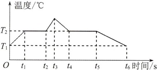 17. (2024·成都)某固态物质的质量为$m$,比热容为$c$,用稳定的热源对它加热(物质在相同时间内吸收的热量相等),到$t_{3}$时刻停止加热,然后让其冷却.在上述过程中记录不同时刻的温度,最后绘制出温度随时间变化的关系图像(如图所示).下列说法正确的是 ()