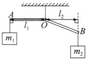 B 解析:杠杆的力臂如答图所示,根据杠杆的平衡条件可知,$G_1l_1 = G_2l_2$,$m_1gl_1 = m_2gl_2$,即$m_1l_1 = m_2l_2$,由于$AO = BO$,则$l_1>l_2$,所以$m_1<m_2$.