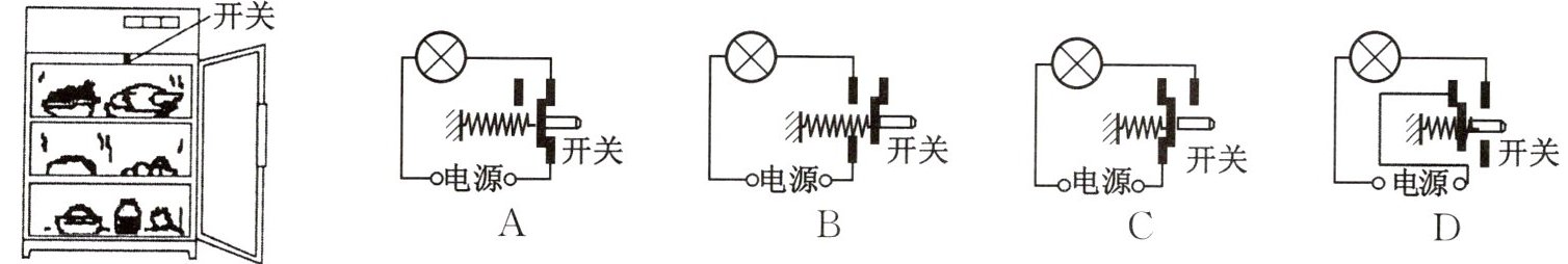 A 解析:当冰箱门打开时,弹簧恢复原状,开关闭合,此时灯泡与电源接通,使冰箱内的照明灯点亮,A符合题意.