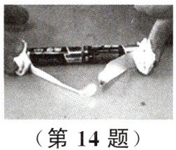 14. 如图所示,某同学将一张细条状铝箔纸的两端分别压在干电池的正、负极,发现铝箔纸发热并燃烧.关于该实验,下列分析正确的是 ()