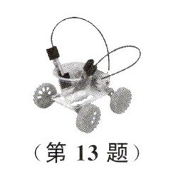 13. 如图所示是一辆“盐水动力”玩具车,车身上方固定了一个小塑料杯,塑料杯壁内侧有一片镁片和一片碳片,当向杯中倒入盐水,使镁片和碳片都浸入盐水中时,小车就能缓缓向前运动.盐水杯相当于电路中的 ()