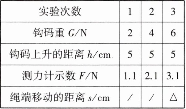 (3)根据表中数据可知,测力计示数小于钩码重力,使用动滑轮可以省力.第3次实验中,绳子自由端移动的距离为s = nh = 2×5cm = 10cm.