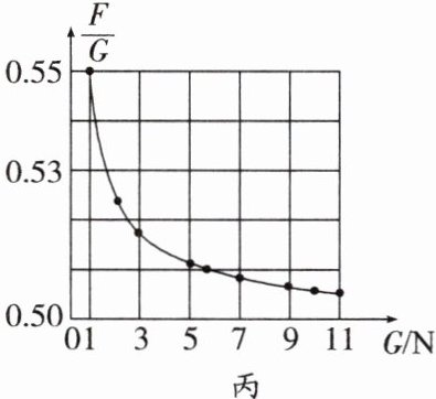 (4)小张继续实验,并作出“拉力与钩码重的比值随钩码重的变化”图像,如图丙所示,分析图像可知:钩码越重,拉力F与钩码重的比值越接近