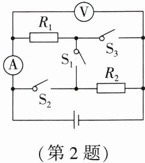 2. 如图所示,电源电压恒定,先只闭合开关 $ S_{1} $,两电表均有示数;再断开 $ S_{1} $,同时闭合 $ S_{2} $ 和 $ S_{3} $,此过程中 (