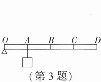 3.(2025·南京鼓楼区期末)如图所示,一根均匀的细木棒可绕O点无摩擦转动,OA= AB= BC= CD,对杠杆施加力F,将挂在A点重为180 N 的物体匀速提升0.4 m.以下说法正确 的是 (