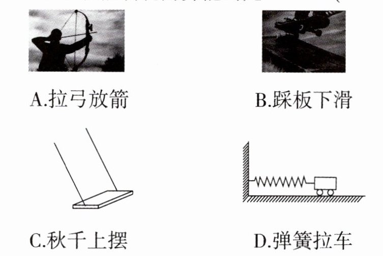 B 做功 乙 解析:实验时应把 B 面紧贴在桌面后松手,此时橡皮筋才能发生弹性形变.橡皮筋发生弹性形变,对卡片做功,将橡皮筋的弹性势能转化为动能.图乙、丙中的两张卡片,压平后,图乙橡皮筋的弹性形变程度最大,故可以对外做的功多,故图乙中卡片可以弹跳得更高一些.