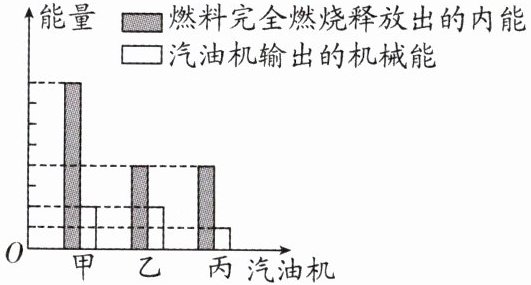 7. 如图所示为甲、乙、丙三部汽油机燃料完全燃烧释放的内能和输出机械能的二维柱状图.根据图中的信息,下列选项正确的是(
