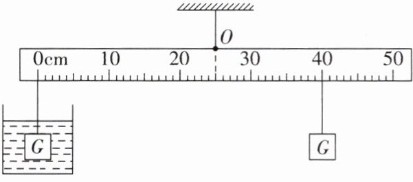 (2)如图,将左侧物块G浸没到水中,移动右侧物块G悬挂的位置至"40 cm"刻度线处,刻度尺又在水平位置平衡,物块G浸没到水中时受到的浮力为______N,物块G的体积为$______m^3.$