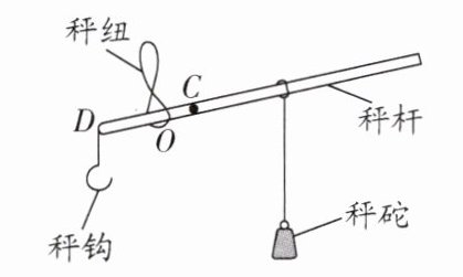 12. (2024·苏州高新区一模)如图是杆秤的示意图,秤钩上不挂物体,提起秤钮,当秤砣移动到C点时,杆秤刚好水平平衡,杆秤的秤砣质量为1 kg,秤和秤钩的总质量为0.5 kg,O点为秤纽悬点,OC= 4 cm,OD= 10 cm,要称量真实质量为2.0 kg的物体,则秤砣离O点______cm.如因长期使用,秤砣磨损,质量变为0.8 kg,再测真实质量2.0 kg的物体时,称出来的质量为______kg.