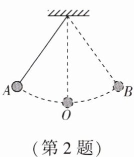 2. (2024·无锡中考)如图所示,将摆球从 A 点静止释放,经过最低点 O 到达 B 点,A、B 两点等高,摆球到达 B 点时动能为