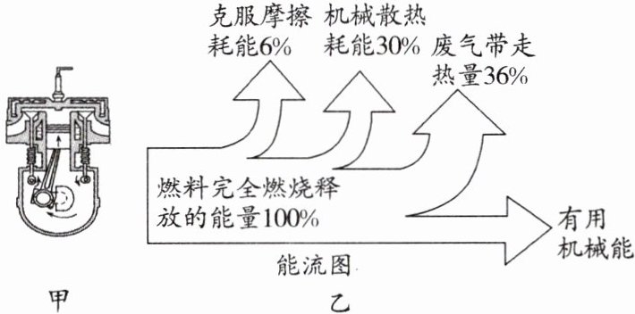 3. (2024·苏州高新区期中)汽车是现代生活中最常见的一种交通工具,如图甲、乙分别是某汽油机的某冲程及能量流向图.下列有关说法正确的是 (