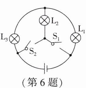 6. 如图所示$,S_1、$$S_2$都断开时,
