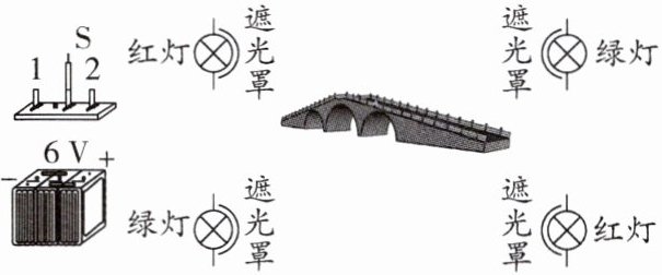 解析:船舶单向通过桥洞,说明若左边的船舶看到的是红灯,则右边的船舶看到的就是绿灯;若左边的船舶看到的是绿灯,则右边的船舶看到的就是红灯.又因为每盏灯出现断路时均不影响其他灯工作,所以这些灯必须并联在电源的两端上.