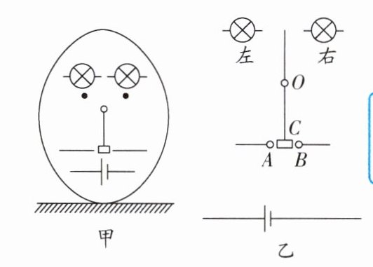 (1)小明想制作一个不倒翁,眼睛用两个小灯泡制成,并且能够随着身体左右摇摆一闪一闪地交替发光,图甲是他在不倒翁内部设计的电路,放大的电路如图乙所示,其中A和B为固定不动的触点,动触点C则通过金属杆连接在固定的转轴O处,且可以绕着O点灵活地左右摆动,构成一个类似单刀双掷开关的装置,这样随着不倒翁身体左右摆动,动触点C可以交替接触到触点A和B.要求:不倒翁向右摆动时右侧的灯泡发光,反之亦然,请按照要求在图乙中用直线代替导线完成电路图的连接.