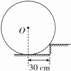 14. 如图所示,质量为60 kg、底面直径为90 cm、质地均匀的圆柱体置于水平地面上,该圆柱体底面圆心O到台阶的距离为30 cm,现要将其推上台阶,请在图中作出最小推力F,且F= N。(g取10 N/kg)