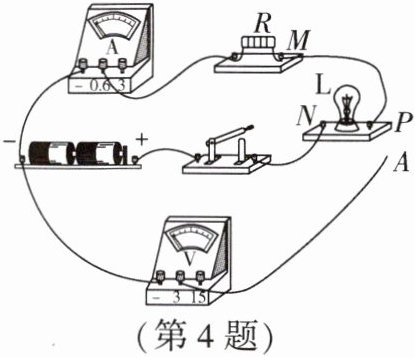 4. (2024·镇江一模)图示电路闭合开关后,电流表无示数,用A接触N时电压表有示数,接触M时电压表无示数,已知电表、开关均完好且电路中只有一个故障,为进一步判断故障,用A再接触P点,下列判断正确的是(