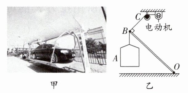 2. 新素材 创新装置 (2024·南京鼓楼区期中)为解决停车难问题,设计了如图甲"路边空中存车亭",工作原理如图乙.电动机通过钢丝绳BC牵引OB杆绕O点转动,B端悬挂存车架A.汽车从乙图所示位置(CB⊥OB)缓慢下降到水平地面的过程中,钢丝绳对B点的拉力将 (