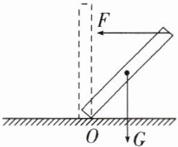 B解析:在棒的一端始终施加水平力F,将棒从图示位置缓慢提起至虚线位置的过程中,根据力臂的定义可知,F的力臂变大,重力G的力臂减小,根据杠杆的平衡条件$Fl_{1}=Gl_{2}$可知,重力不变,重力的力臂变小,则重力与重力的力臂的乘积减小,动力臂变大,故动力F变小,故B符合题意.
