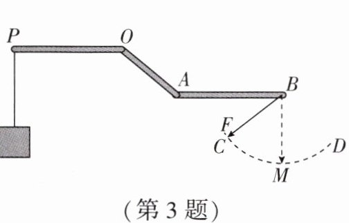 3. (2025·南京建邺区期中)如图所示,杠杆POB的支点为O,拉力F始终作用在B端使杠杆平衡,且AB段始终保持水平.在拉力F逆时针转动的过程中,下列说法正确的是 ( )