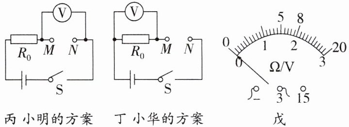 (5)利用电压表可以直接测量电压的大小,能否把电压表改装为间接测量电阻大小的仪表呢?小明和小华经过思考,分别设计了如图丙、丁所示的方案(电源电压恒定不变),并进行了以下操作和分析: