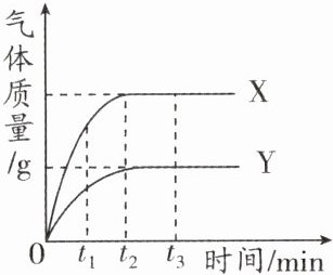 C. $t_{2}$时,消耗盐酸的质量:X>Y