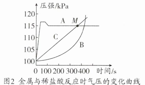 14. 新趋势 数字化实验 (2023·益阳中考)数字化实验利用传感器能准确地测定实验过程的相关数据。如图是某同学将少量锌粒放入盛有过量稀硫酸的恒容密闭容器中,用压强传感器测得容器内气体压强与反应时间的变化曲线。