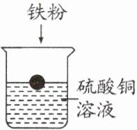 解析:加入铁粉后,在溶液中发生了反应${Fe + CuSO_{4} = FeSO_{4} + Cu}$,即每有160份质量的硫酸铜被消耗,就有152份质量的硫酸亚铁生成,即溶液的质量减少了8份,故反应后溶液的密度变小,小球所受的浮力变小,故小球下沉一些,即小球浸入液体中的体积比原来大。