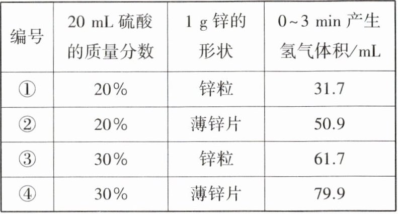 5. 思想方法对比法 (2023·泸州中考改编)下表为某核心期刊刊文中氢气制备对比实验的数据(将锌粒压成薄锌片增大了表面积)。下列不能由实验得出的结论是()