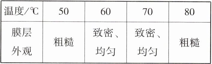 (4)根据实验2、实验3的结果,膜层外观符合要求的温度、pH的范围依次为______、______。
