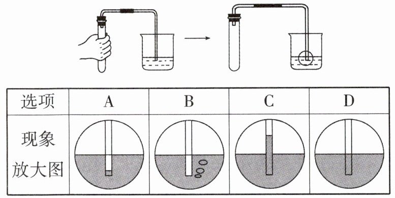 C 解析:若装置的气密性良好,用手握试管外壁时,可观察到导管口有气泡冒出,将双手移开一会儿后,烧杯内的水则沿导管口倒流形成一段水柱。