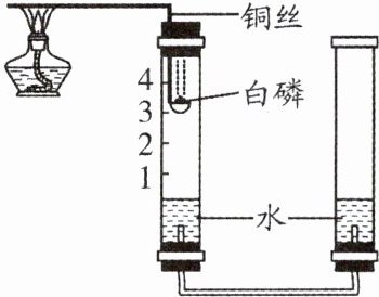 D 解析:酒精灯加热铜丝,铜是热的良导体,导热使得白磷燃烧,A正确;白磷燃烧结束后,若不等到装置恢复至室温就读数,剩余的气体在受热状态下处于膨胀状态,使测定结果偏小,所以待装置恢复至室温时再读数,B正确;将左侧空气体积划分为5等份,氧气约占空气体积的五分之一,实验成功的标志为左侧玻璃管内液面约上升到刻度1处,C正确;白磷燃烧的现象是产生大量的白烟,不是烟雾,D错误。