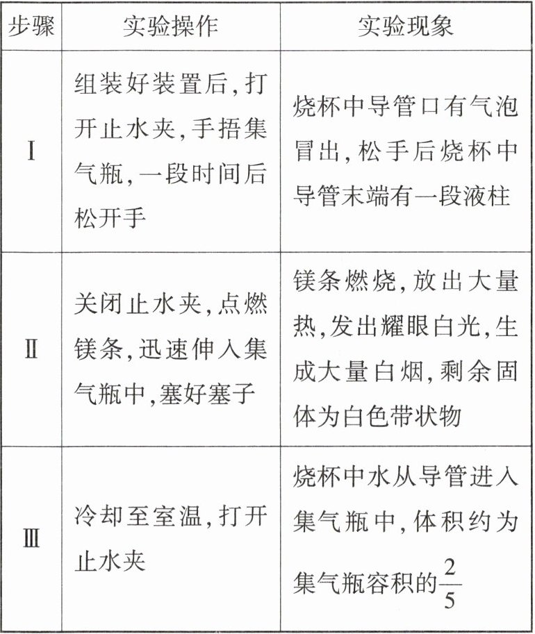 (2)步骤Ⅰ组装好装置后,打开止水夹,手捂集气瓶,一段时间后松开手,烧杯中导管口有气泡冒出,松手后烧杯中导管末端形成一段液柱,说明装置的气密性良好。