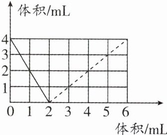 A 解析:每增加1mL的氧气,氢气则对应消耗了2mL,当氧气体积小于2mL时,氢气有剩余;当氧气体积为2mL时,两者恰好完全反应,所以反应中消耗氢气4mL,A错误;氧气大于2mL时,氢气被反应完,氧气有剩余,虚线部分表示剩余的气体是氧气,B正确;当氧气体积为2mL时,两者恰好完全反应,所以实线与虚线的交点表示两种气体恰好完全反应,C正确;每增加1mL的氧气,氢气则对应消耗了2mL,当氧气体积小于2mL时,氢气有剩余,所以实线部分表示剩余的氢气,D正确。