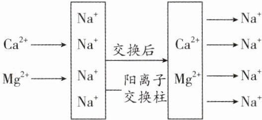 (3)用硬水洗涤衣物会使衣物变硬。将硬水通过如图中的阳离子交换柱后,可变成软水(图中阴离子未画出),交换后的水仍然呈电中性,则一个$Mg^{2+}$可以交换出____个$Na^