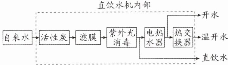 8.(2024·宿迁月考)学校安装了直饮水机,只要将它与自来水连接,便可以除去水中的部分杂质得到直饮水。某品牌直饮水机的工作原理如图所示: