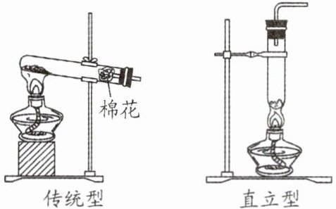 9.思想方法对比法兴趣小组同学利用干燥的高锰酸钾设计了直立型装置制取氧气,并与传统装置相比较,分别放入5g高锰酸钾,用同一酒精灯分别加热,每组进行五次实验后取平均值记录如表,关于此实验的说法错误的是()