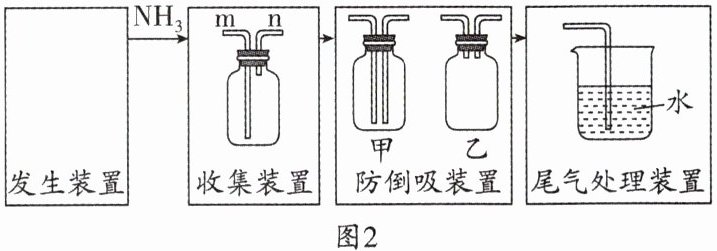 ②收集$NH_{3}$时,气体应从图 2 中“收集装置”的____(填“m”或“n”)端通入。