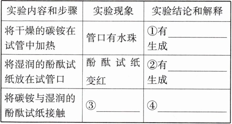 (3)因为有水、氨气生成,所以可以得出碳铵受热消失,发生了化学变化。