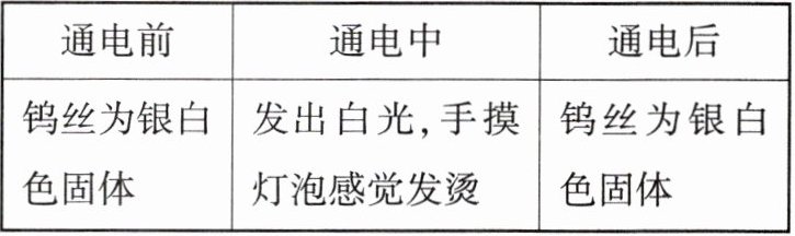 【分析】通电前后,钨丝本身没有发生变化,钨丝通电发光、放热属于____变化。