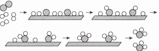 9. (2025·安庆期中)在催化剂作用下,氮气($N_{2}$)和氢气($H_{2}$)反应生成氨气($NH_{3}$)的微观过程示意图如下。下列说法不正确的是 ()