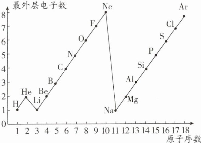 10. 如图是1~18号元素原子最外层电子数与原子核电荷数的关系图。请回答下列问题: