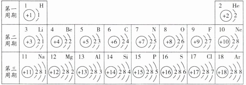 (3)不相似 氦原子核外只有一个电子层,最外层有2个电子,在化学反应中不易得失电子,化学性质不活泼;镁原子核外有三个电子层,最外层有2个电子,在化学反应中易失去电子,化学性质活泼,因此He和Mg的化学性质不相似